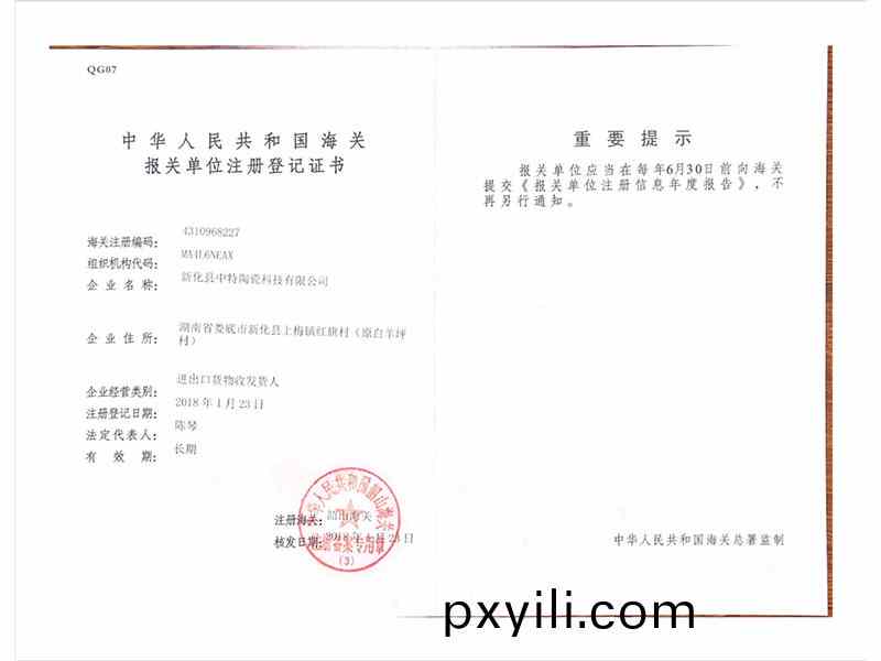 海關(guān)(guan)註(zhu)冊(cè)登(deng)記證(zheng)書(shū)